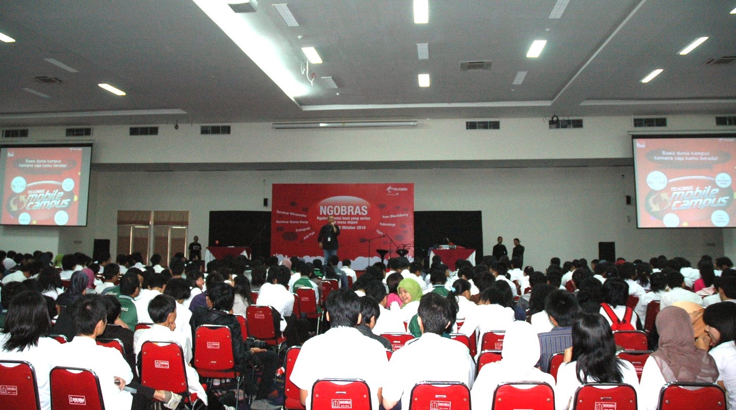 Telkomsel mengadakan acara Road Show Mobile Campus 2010 dengan tema Event NGOBRAS (Ngobrol Santai). Kegiatan yang rutin dilakukan setiap tahunnya oleh Kantor Pusat ini bertempat di Aula Politeknik Telkom Jl.Telekomunikasi, Ters. Buah Batu, Bandung . Seminar mengenai Dunia Kerja, Wirausaha, Fotografi, Tren BackBerry dan Informasi & Tips Teknologi ini diadakan secara besar-besaran diikuti oleh sekitar 1000 mahasiswa dari Politeknik Telkom, STISI Telkom, IMT Telkom dan IT Telkom dengan pendaftaran gratis dan disediakan makan siang gratis. Syaratnya adalah mahasiswa dan pengguna Telkomsel, jika belum menggunakan produk Telkomsel maka mahasiswa diperkenankan membeli perdana As seharga Rp.2.000,-/pcs di Customer Service Politeknik Telkom lantai 1.