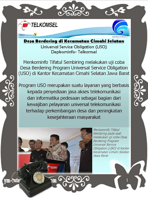 Kepercayaan pemerintah kepada PT.TELKOMSEL untuk mengakomodasi layanan akses telekomunikasi dan informatika sebanyak 25.000 (dua puluh lima ribu) desa terpencil yang dikenal dengan Desa Berdering telah dirampungkan tepat 100 (seratus) hari program kerja Menkominfo. Selain menyelenggarakan program Desa Berdering juga terdapat Desa Pinter (Desa Punya Internet) dan Pusyantip (Pusat Layanan Telekomunikasi dan Informasi Perdesaan). Atas pertimbangan faktor pemekaran daerah dan cakupan desa yang belum terjamah maka pemerintah mengisyaratkan tambahan pekerjaan lokasi USO kepada PT.TELKOMSEL.