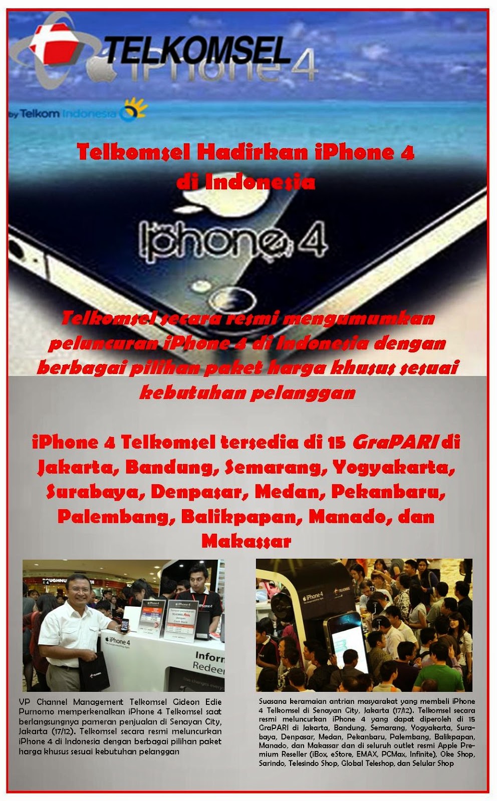Telkomsel secara resmi mengumumkan peluncuran iPhone 4 di Indonesia dengan berbagai pilihan paket harga khusus sesuai kebutuhan pelanggan.