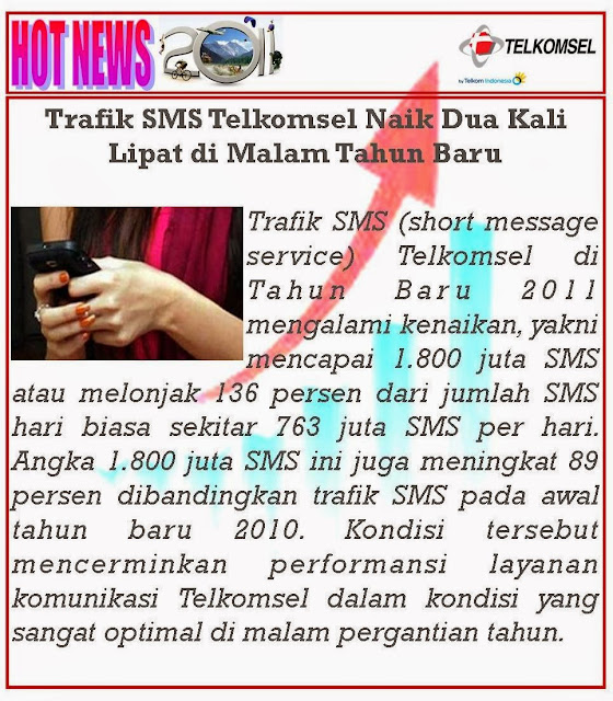Trafik SMS (short message service) Telkomsel di Tahun Baru 2011 mengalami kenaikan, yakni mencapai 1.800 juta SMS atau melonjak 136 persen dari jumlah SMS hari biasa sekitar 763 juta SMS per hari. Angka 1.800 juta SMS ini juga meningkat 89 persen dibandingkan trafik SMS pada awal tahun baru 2010. Kondisi tersebut mencerminkan performansi layanan komunikasi Telkomsel dalam kondisi yang sangat optimal di malam pergantian tahun.